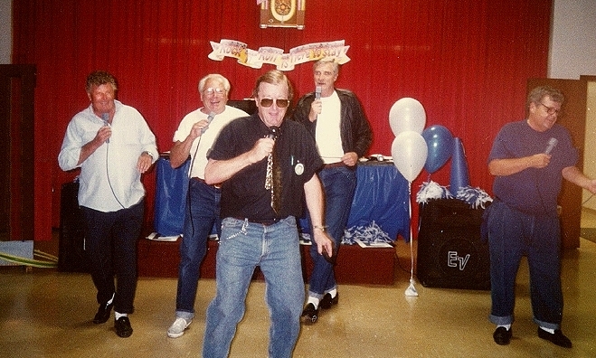 That's us, "The Lip Sync DooWopers". Circa mid 90's with Ken Loesch, Ken Panhorst, Sandy Estabrook, John Kingma & Rusty Thulane singing Our Version of Little Darlin'. Click Image to listen. As for the origin of this webpage. I registered my name SandyEstabrook.com, then I had to come up with something. This is the result.