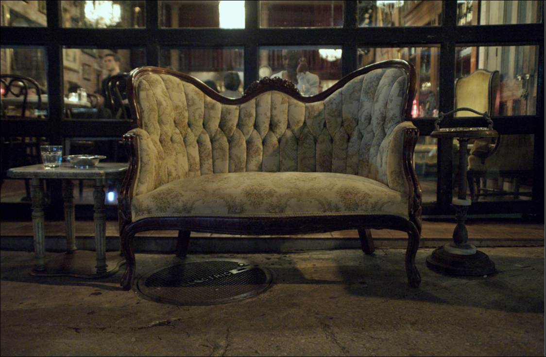 "Dining Al Fresco, Couch Over Manhole (Elizabeth st. SOHO) |
