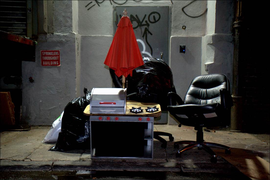 "Dining Al Fresco, Couch Over Manhole (Elizabeth st. SOHO) |